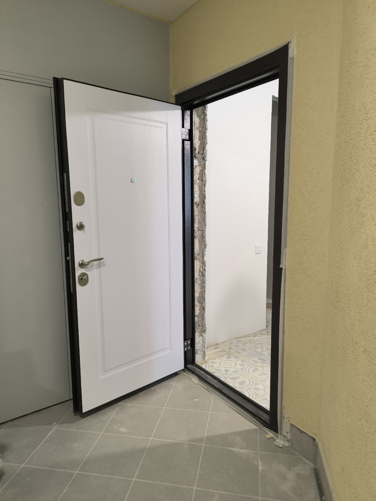 Отделка двери в белом цвете придает ей элегантный внешний вид, который легко впишется в любой интерьер. Резиновый уплотнитель с двумя контурами эффективно защищает от холода и шума, создавая комфорт в помещении. Замки с тремя ригелями, один сувальдный и один цилиндровый, обеспечивают высокий уровень безопасности. Возможность комбинировать отделку, а также добавлять стеклопакеты, зеркала или кованые элементы, делает эту дверь отличным выбором для вашего дома или офиса.