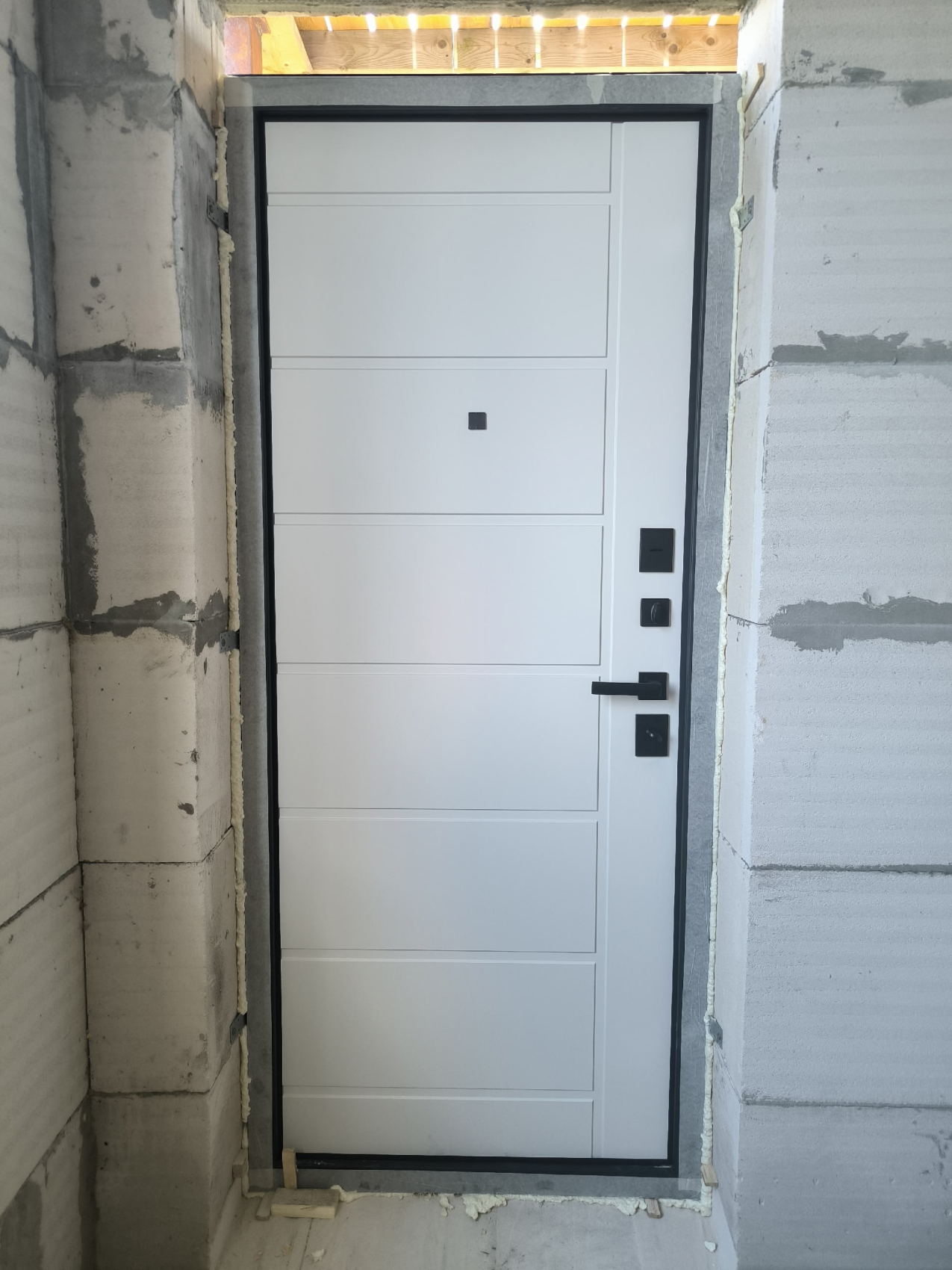 Белая входная дверь в квартиру №7 — это универсальное и стильное решение для установки в дачах, частных домах, коттеджах, квартирах, офисах и подъездах. Прочная конструкция из профильной трубы 50 х 25 мм и листа холоднокатанной стали толщиной 2 мм обеспечивает долговечность и стойкость к внешним воздействиям. Ребра жесткости из профильных труб 40 х 25 мм добавляют дополнительную прочность, а противосъемные блокираторы ⌀ 10 мм надежно защищают от взлома.